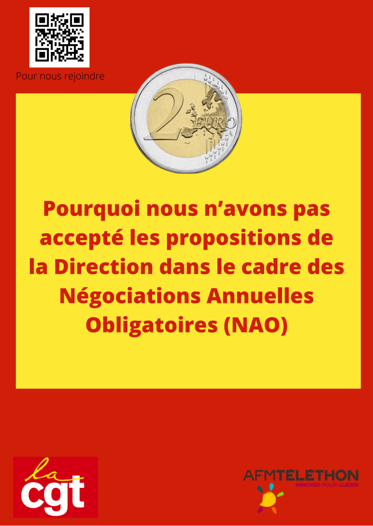 Au même moment, l’AFM-Téléthon faisait de considérables économies (en millions d’euros) du fait du télétravail généralisé. A mettre en regard avec les 2 € qui semblent, aux yeux de la Direction, correspondre au coût de nos efforts pour que vivent l’Association et le Téléthon !